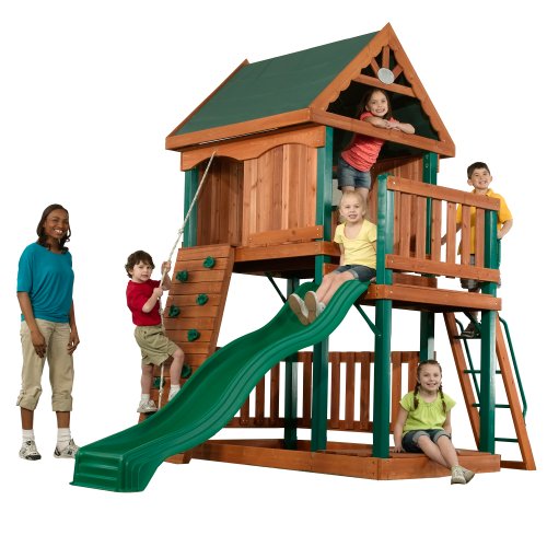 - Kit includes: 8 foot slide, Play handles, Canopy roof, 4 and 5 ft. deck heights and a Rock Wall with 10 climbing rocks